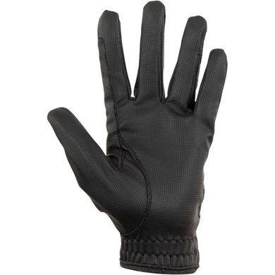 Deze chique wedstrijdhandschoenen zijn gemaakt van geperforeerd imitatieleder met ventilatiegaatjes op de vingers. De handschoenen zijn sierlijk afgewerkt met een opvallende contrastbies rondom de onderzijde en de klittenbandsluiting. Daarnaast is de klitttenbandsluiting ook versierd met strass steentjes.