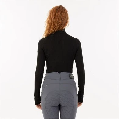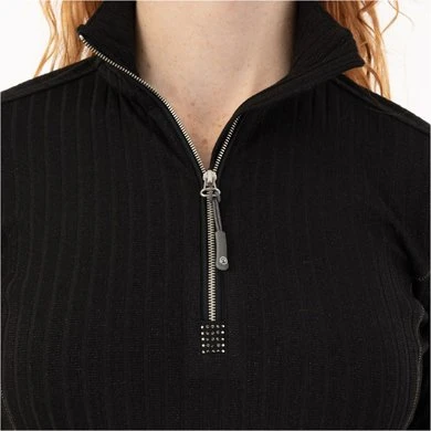 • Opstaande kraag met gunmetalkleurige ritssluiting, biezen in dezelfde kleur en gunmetal strass-steentjes op de ritsbescherming