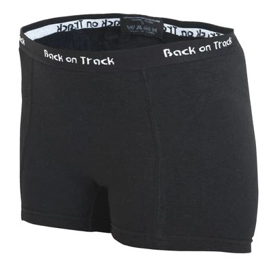 De Back on Track boxershort kan hulp bieden bij pijn of spanning in de heup, liesproblemen, menstruatiepijn of door kou veroorzaakte klachten aan de blaas. De boxershorts voor dames zijn gemaakt van een dunne, lichte combinatie van katoen en polyester, en biedt een aangenaam gevoel. Verkrijgbaar in de maten S, M, L, XL, XXL en XXXL.