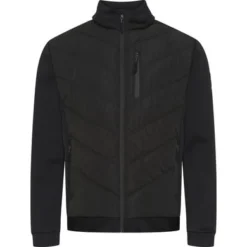 Quilted body fabric: 100% Polyester. Sleeve fabric: 97% nylon, 3% elastane.