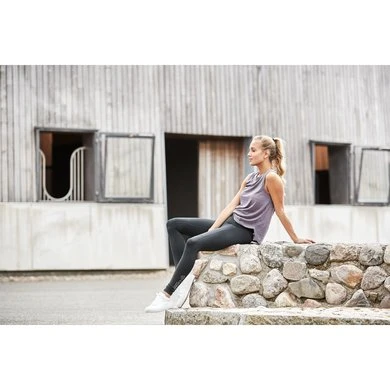 Slouchy fit tank top with rounded hemline.