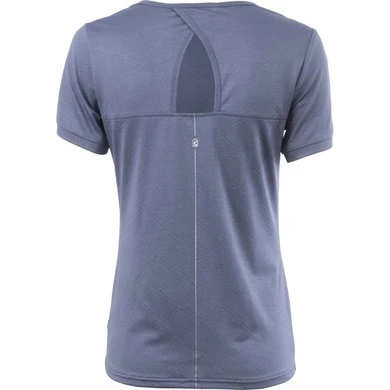 Hals in het rugstuk. Zilveren artwork langs de halslijn. Zilveren streep met stijgbeugel C-print middenachter.