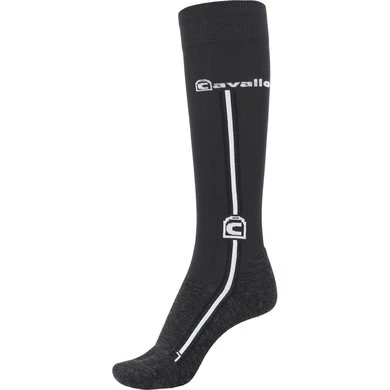 – unisex functionele wintersokken gewatteerde voet, gebreid met de fijnste merinowol, winters warm en zacht R/L-identificatie en handgeknoopte teen extra dunne schacht die niet zichtbaar is in laarzen met streepdetail, stijgbeugel- en subtiel Cavallo-logo op manchet