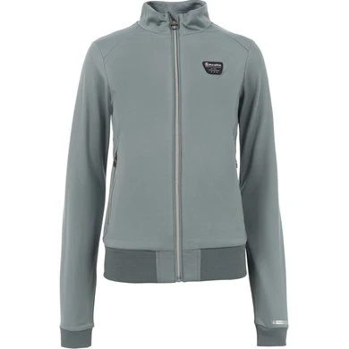 – Zilveren artwork met kristallen boven de geribbelde tailleband op de linkermouw.