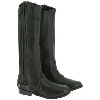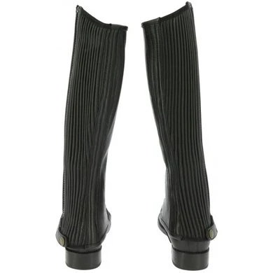 Elegant gevormde half-chaps in fijn generfd soepel rundleer. Kuit en wreef zijn elastisch met plooien. Rits is beveiligd met drukknop. Met leer versterkte elastische voetbanden.