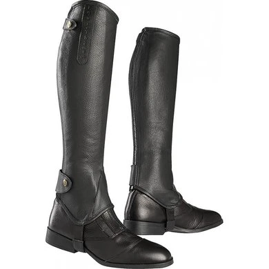 Volnerf rundleer halve chaps, fijn generfd. In soepel leer passen ze perfect bij uw kuit voor optimaal comfort. ‘YKK’ achterrits, beveiligd met drukknopen op flappen aan de boven- en onderkant. Elastische voetbanden zijn versterkt met leer.