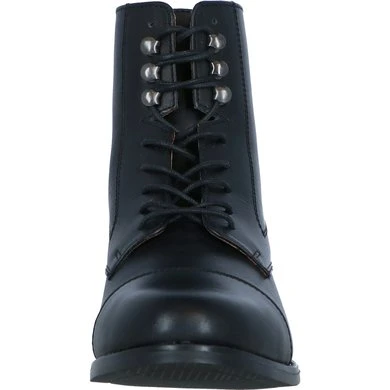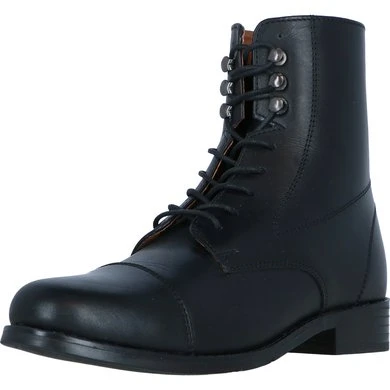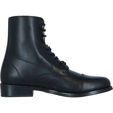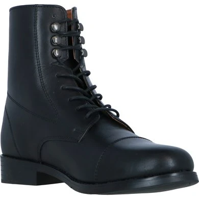 Lichte jodphurs van rundleer met veters. Gevoerd met varkensleer aan de bovenkant en met NYLEX® voor de rest. EVA-inlegzolen met inzetstukken van schuimrubber met dubbele dichtheid op de hielen. Buitenzool van PVC.