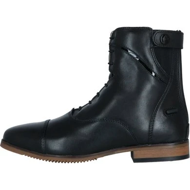 Jodphurs van rundleer. Elegant en functioneel. Elastische veters aan de bovenkant en YKK rits langs de achterkant van de hielen. Glimmende zwarte elementen. Sporensteunen aan de zijkanten. Blake genaaide anti-slip Neolite zolen met masoniet hakken. Past bij de andere jodphurs en rijlaarzen in de Wavy collectie.