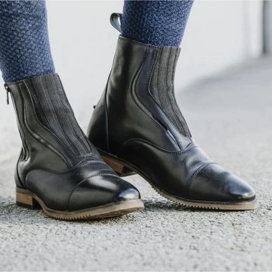 Jodphurs van rundleer. Geschikt voor elke voetvorm. Elastische wreef, YKK rits aan de buitenenkel. Glimmende zwarte elementen. Sporensteunen aan de zijkanten. Blake genaaide anti-slip Neolite zolen met masoniet hakken. Past bij de andere jodphurs en rijlaarzen in de Wavy collectie.