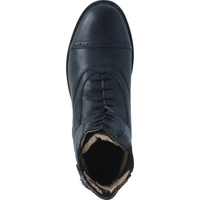 Zeer soepel en super comfortabele vaars leren jodpurs, dankzij de 5 mm foam vulling. Het comfort is verder vergroot door de elastische vetersluiting. Om gemakkelijk in te stappen: smalle elastische inzets aan de zijkanten en YKK rits aan de achterkant met drukker en beschermende flap. Spoordragers aan de zijkanten. Foam binnenzool met stoffen bovenkant, geient leren voering en rubber zool.