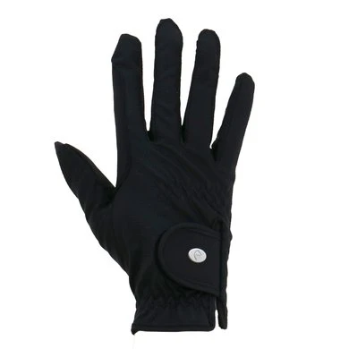 Handpalmen en rug van de handen in polyurethaan. Stretch pols en met flappen op klittenband. EquiThème-logo in zilverachtig metaal op de klep. Samenstelling: 50% elastaan, 40% polyurethaan, 10% polyester.