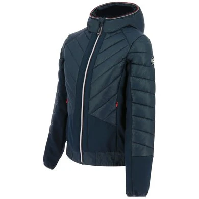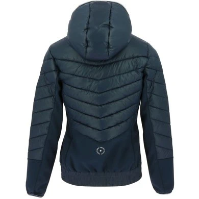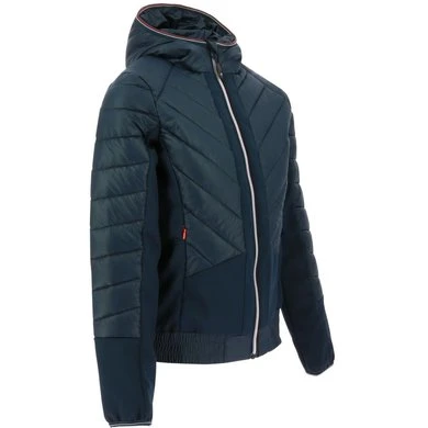 Hybride jack met isolerende capuchon en softshell inzetstukken voor rekbaarheid.HIGHLIGHTSWATERAFSTOTEND: De buitenstof is DWR behandeld (Durable Water Repellent).ISOLATIE: Vulling van polyestervezel.STRETCH: Contrasterende materialen in softshell tricot.KENMERKEN:- onderzijde van de jas is elastisch – ritssluiting aan de voorkant- handzakken met ritssluiting- elastische boorden aan capuchon en mouwuiteinden- getailleerd modelHoofdstof: 100% gerecycled polyester.Contrasterende stof: softshell: 100% polyester, 60% gerecycled.Vulling: 100% polyester.