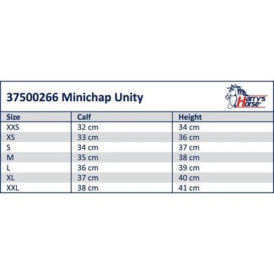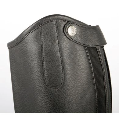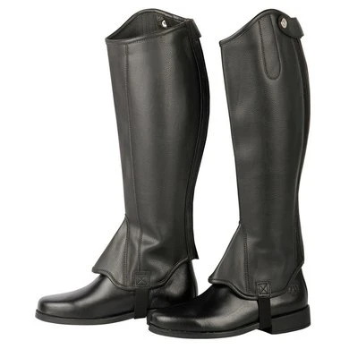 Minichap bestaande uit synthetisch leder en elastiek. Elegante pasvorm met dressuurboog.
