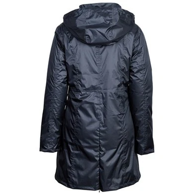 3-in-1 jas, waterdichte (seamtaped) lange buitenjas met afritsbare capuchon, twee zakken met ritssluiting en binnenzakje met klittenband sluiting, ritssluiting aan de achterzijde zodat je er ook mee kan rijden. Aan de binnenkant is een kort gevoerd jasje geritst zodat het geheel een warme waterdichte jas is. Als je de korte binnenjas eruit ritst heb je een dunne waterdichte jas en apart een kort gevoerd jasje. Het korte jasje heeft twee zakken met ritssluiting en een binnenzakje met ritssluiting. Materiaal lange jas: 100% polyester W/P 5000mm/breathable 3000g./24hrs, alle naden zijn getaped. Voering 100% polyester taffeta. Materiaal korte jas: 100% 300t polyester. Voering: kunstdons