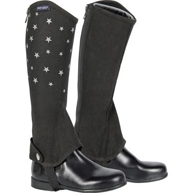 Amara minichap met elastisch kuitgedeelte en rits aan de buitenzijde. Uitgevoerd met een leuke sterrensprint. Amara is een synthetisch suede welke volledig wasbaar is op 30 graden op normaal programma. Mag NIET in de droger!