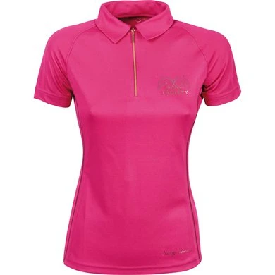 Poloshirt met een korte ritssluiting, een sierbies met tekst aan de binnenkant van de kraag en een Equestrian Society logo op de borst.