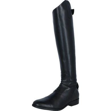 Gladlederen laars met dressuurboog, elastische veters en een lange rits aan de achterzijde. Geheel leder gevoerd voor een goede ventilatie. Aan de bovenkant van de rits zit een lederen beschermflap die eenvoudig te openen en sluiten is door middel van een drukknoop. Met een zachte versteviging op de enkel ter bevordering van het comfort. Voorzien van een chique, handgemaakte zool.
