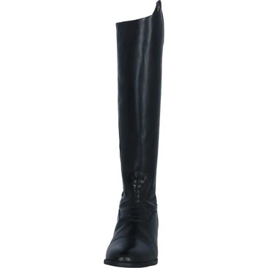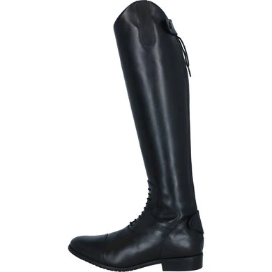 Volnerf lederen laars met dressuurboog, elastische veters en een lange rits aan de achterzijde. Geheel leder gevoerd voor een goede ventilatie. Aan de bovenkant van de rits zit een lederen beschermflap die eenvoudig te openen en sluiten is door middel van een drukknoop. Met een zachte versteviging op de enkel ter bevordering van het comfort. Voorzien van een chique, handgemaakte zool.