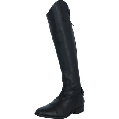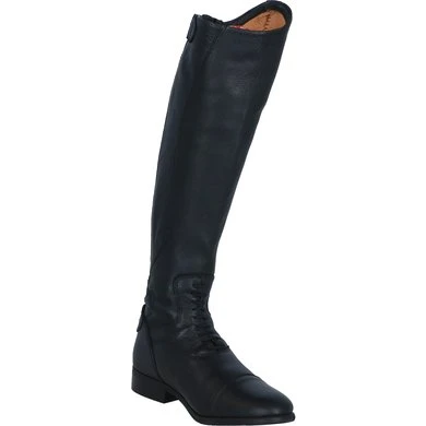 Volnerf lederen laars met dressuurboog, elastische veters en een lange rits aan de achterzijde. Geheel leder gevoerd voor een goede ventilatie. Aan de bovenkant van de rits zit een lederen beschermflap die eenvoudig te openen en sluiten is door middel van een drukknoop. Met een zachte versteviging op de enkel ter bevordering van het comfort. Voorzien van een chique, handgemaakte zool.
