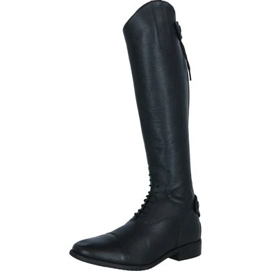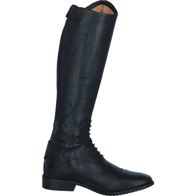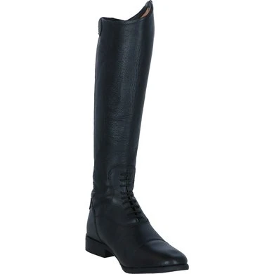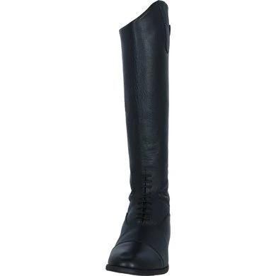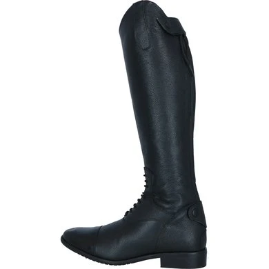 Volnerf lederen laars met dressuurboog, elastische veters en een lange rits aan de achterzijde. Geheel leder gevoerd voor een goede ventilatie. Aan de bovenkant van de rits zit een lederen beschermflap die eenvoudig te openen en sluiten is door middel van een drukknoop. Met een zachte versteviging op de enkel ter bevordering van het comfort. Voorzien van een chique, handgemaakte zool.