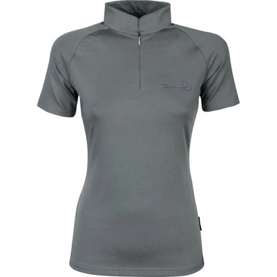 Shirt met korte mouw, opstaande kraag met ritssluiting. 93% polyester / 7% elastan.