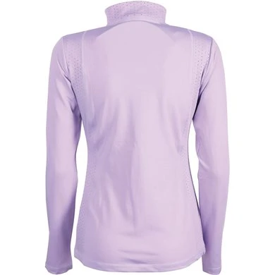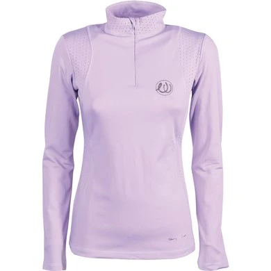 Shirt met opstaande kraag en korte ritssluiting, lasercut details op kraag en body, logo op de borst.