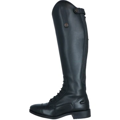 Deze laarzen hebben een rits aan de achterzijde en een royale elastieken inzet. Ze zijn zacht gevoerd. De zool is waterdicht. De schoen zelf is gemaakt van echt leer en de schacht van PU leer en elastisch weefsel. De schoenen hebben sporenhouders en zijn duurzaam.ย