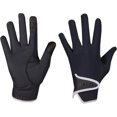 Deze licht en luchtige handschoen is de ideale keuze voor zowel dagelijks rijden als voor wedstrijden. Lichtgewicht materiaal en goede pasvorm zorgen voor een mooie modieuze basis handschoen afgewerkt met een subtiele bies rond de pols. De handschoen is voorzien van een Velcro sluiting en Touch Screen friendly duim- en wijsvingertoppen.