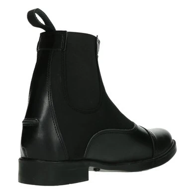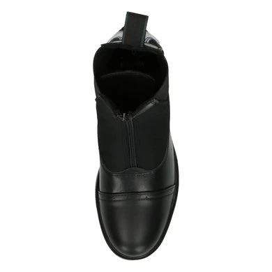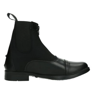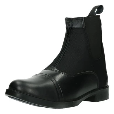 Jodphur schoen van synthetisch leer, rubberen zool, rits aan voorzijde.
