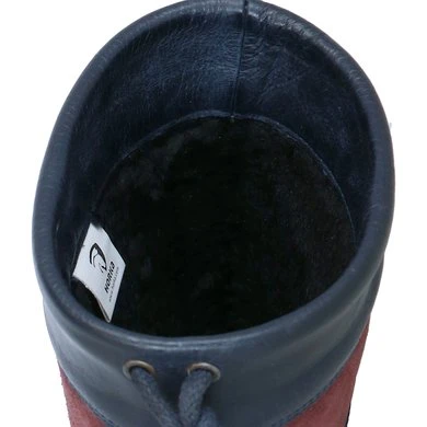 Korte outdoor laarzen met leuk effect van leer en suรจde met teddyvoering van zowel voet als schacht.