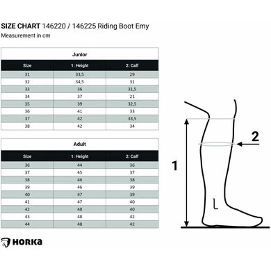De Horka rijlaars Emy Junior is een rijlaars van synthetisch leer met strass steentjes langs de schacht. De laars heeft een elastische veter op de wreef en een Cambrill voering
