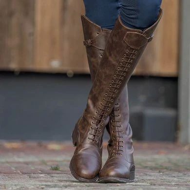 – Modieuze rekbare synthetisch lederen rijlaars met veters