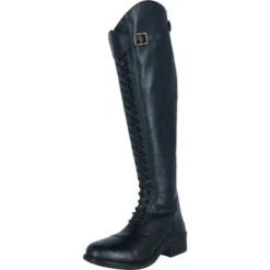 – Modieuze rekbare synthetisch lederen rijlaars met veters