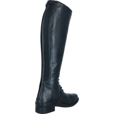Modieuze rijlaars met veters heeft een zachte stoffen voering. Langs de gehele achterkant is een YKK rits. Deze rijlaars is te verkrijgen in verschillende kuitwijdtes.ย