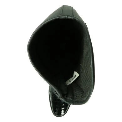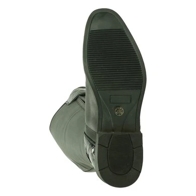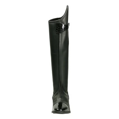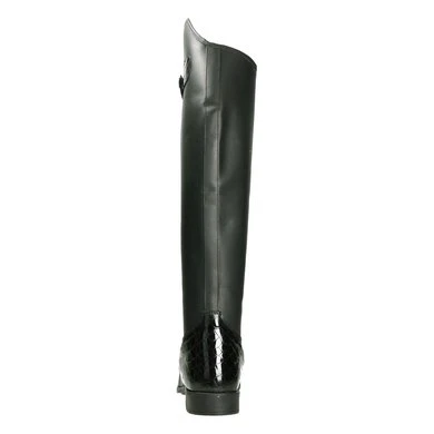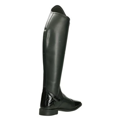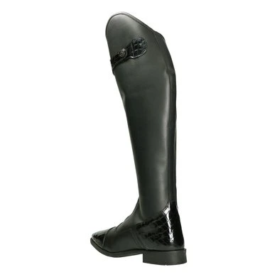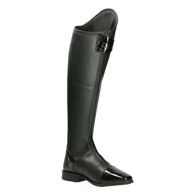 Lange leren rijlaars met lederen delen aan de bovenkant, hiel en teen.