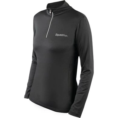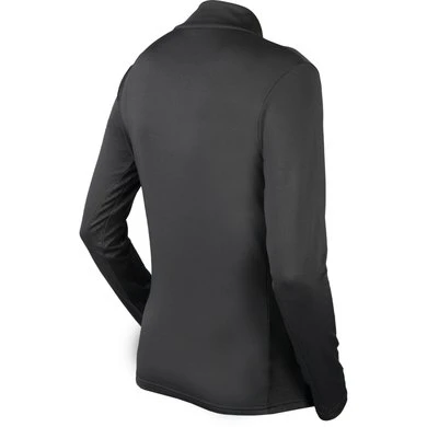 Dames shirt met lange mouwen, gemaakt van een technische stof welke is behandeld met polygiene om de groei van geur veroorzakende bacteriën te voorkomen. Het shirt heeft een fijne kol met rits en verschillende prints en contrasterende stiksels.