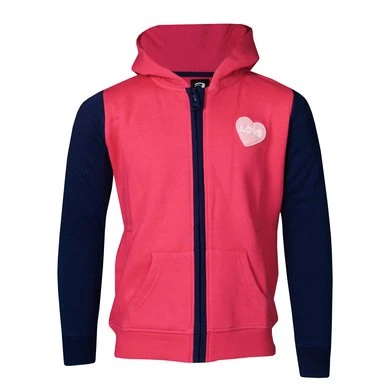 | Comfortabel kindervest met capuchon in felle contrasterende kleuren. : Productspecificaties: – Volledige rits vooraan, “kangoeroe”-zakken vooraan – Geribde manchetten – “Zen” Jolly kunstwerk op achterkant Materiaal: 100% katoen fleece, 300 g/m, geruwde binnenkant |
