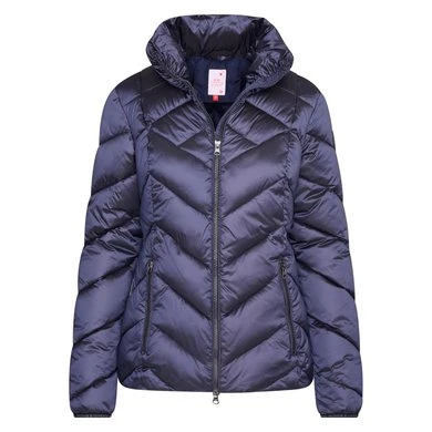 Ultrazacht pufferjack met vulling van nepdons. De stof glimt als een parel. Fancy quiltpatroon voor een sportieve uitstraling. De kraagvorm aan de voorkant is hoog voor extra bescherming. 2-weg rits aan de voorzijde en zakken afsluitbaar met ritsen. Op de dragers linkerkant een zeer chique badge. In deze jas ben jij de coolste rijder van de stad!