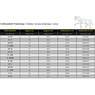 De vegan “Cortica” chaps zijn gemaakt van kurk aan de buitenkant en Amara (synthetisch suรจde) aan de binnenkant, wat zorgt voor een goede grip op het zadel. De textielen voering zorgt voor een hoog draagcomfort. Dankzij de elastische inzetstukken passen de chaps zich optimaal aan uw kuiten aan en zorgen ze ook voor een gemakkelijke hantering bij het aantrekken van de chaps. De elegante contraststreep aan de buitenkant is een mooie blikvanger en is terug te vinden op alle producten uit het kurk-assortiment “Cortica”.