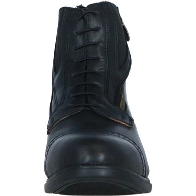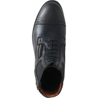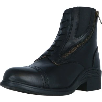 Gemaakt van bijzonder robuust, natuurlijk gelooid, geolied rundleer, waardoor het zeer duurzaam en onderhoudsvriendelijk is. De speciaal ontwikkelde leest is uiterst comfortabel om te dragen. Vetersluiting aan de voorkant, gebogen ritssluiting aan de zijkant in een elegante messinglook, ritssluiting gemerkt met cavalcade. Dankzij de elastische inzetstukken aan beide zijkanten ligt hij bijzonder mooi om de enkel. Lus bij de ingang voor gemakkelijk uitglijden. Met sporenhouder. De hoogwaardige binnenzool zorgt voor een optimale drukverdeling in het voetbed en is tevens ademend voor een comfortabele pasvorm. De robuuste rubberen antislipzool van de schoen is zeer flexibel, maakt anatomisch afrollen mogelijk en is zacht voor de gewrichten.