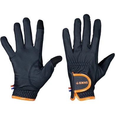 Handschoenen gemaakt van synthetisch leer. De handschoen beschikt over een klittenbandsluiting met KNHS logo.