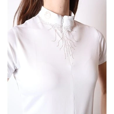 Onze Junior Femka-polo heeft een zeer verfijnde look met prachtige roségouden kristallen lianen rond de nek en op de borst. De roségouden kristallen lianen worden alleen gescheiden door een perfect verborgen nekrits. De polo is gemaakt van de zeer functionele MON-TECH-stof die zorgt voor een zeer goed ademend en comfortabel gevoel tijdens het rijden. Perfecte match met onze Femka Rijbroek. 93% micropolyester, 7% elastaan, – Mon-tech stof, Vrouwelijke pasvorm, Ademend, Zacht gevoel, Vochtafvoerend