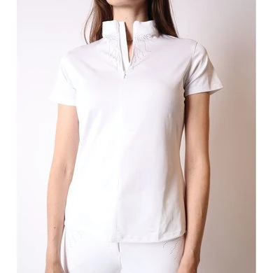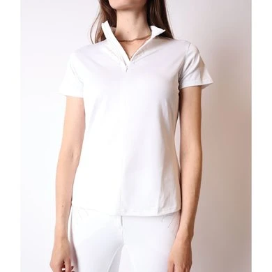 Onze Femka-polo heeft een zeer verfijnde look met prachtige roségouden kristallen lianen rond de nek en op de borst. De roségouden kristallen lianen worden alleen gescheiden door een perfect verborgen nekrits. De polo is gemaakt van de zeer functionele MON-TECH-stof die zorgt voor een zeer goed ademend en comfortabel gevoel tijdens het rijden. Perfecte match met onze Femka Rijbroek. 93% micropolyester, 7% elastaan, – Mon-tech stof, Vrouwelijke pasvorm, Ademend, Zacht gevoel, Vochtafvoerend