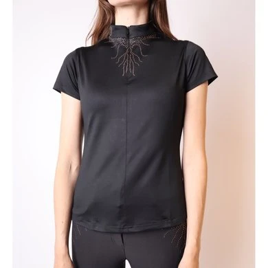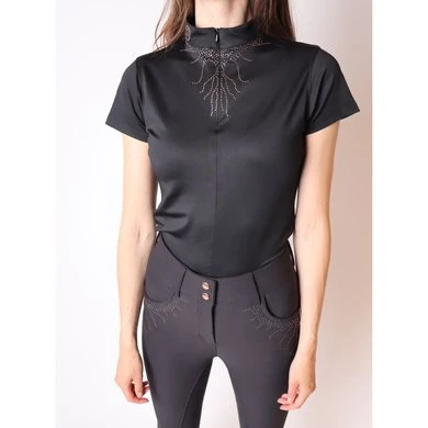 Onze Femka-polo heeft een zeer verfijnde look met prachtige roségouden kristallen lianen rond de nek en op de borst. De roségouden kristallen lianen worden alleen gescheiden door een perfect verborgen nekrits. De polo is gemaakt van de zeer functionele MON-TECH-stof die zorgt voor een zeer goed ademend en comfortabel gevoel tijdens het rijden. Perfecte match met onze Femka Rijbroek. 93% micropolyester, 7% elastaan, – Mon-tech stof, Vrouwelijke pasvorm, Ademend, Zacht gevoel, Vochtafvoerend
