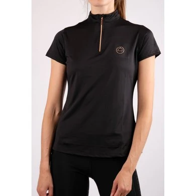 Everly Logo Polo in een nieuwe bijgewerkte versie met roségouden details. Aan de voorkant zit een roségouden halsrits en op de linkerborst bevindt zich een Montar-logo in roségouden kristallen. De zeer functionele Mon-tech stof is ademend en zweetabsorberend, wat zorgt voor een comfortabel gevoel, zelfs als je hard werkt op je paard. Combineer Everly roségouden polo met onze prachtige Molly rijbroek met roségouden details voor een mooie en exclusieve look.