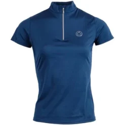 Everly Mon-Tech polo met lage opstaande kraag en helder kristallogo – nu verkrijgbaar in prachtige nieuwe zomerkleuren. De perfecte polo voor je klassieke ruitergarderobe. De zeer functionele Mon-tech stof is ademend en zweetabsorberend, wat zorgt voor een comfortabel gevoel, zelfs als je hard werkt op je paard.