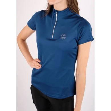 Everly Logo Polo met korte mouwen en een lage opstaande kraag. Aan de voorkant zit een zilveren nekrits en aan de linkerkant van de borst zit een Montar-logo in heldere kristallen. De zeer functionele Mon-tech stof is ademend en zweetabsorberend, wat zorgt voor een comfortabel gevoel, zelfs als je hard werkt op je paard. De perfecte polo voor training. Verkrijgbaar in nieuwe lentekleuren.