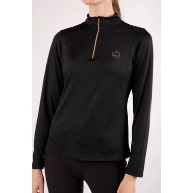 Everly Logo Polo met lange mouwen en een lage opstaande kraag. Aan de voorkant zit een zilveren nekrits en aan de linkerkant van de borst zit een Montar-logo in roségouden kristallen. De zeer functionele Mon-tech stof is ademend en zweetabsorberend, wat zorgt voor een comfortabel gevoel, zelfs als je hard werkt op je paard. De perfecte polo voor training. Verkrijgbaar in nieuwe winterkleuren. MON-TECH Polyester 92%, spandex 8%