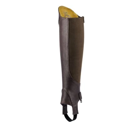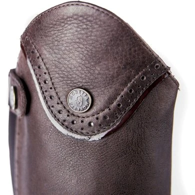 Leren beenkappen van fijne kwaliteit met brogue en lakdetail. Moretta Lucetta beenkappen zijn gemaakt van zacht, volnerf leer en ongevoerd voor een antislip pasvorm. Dressuur gesneden tops. Nubuck binnenkuiten. Achter elastische kuitpanelen. YKK-ritsen over de volledige lengte. Elastische voetbeugels
