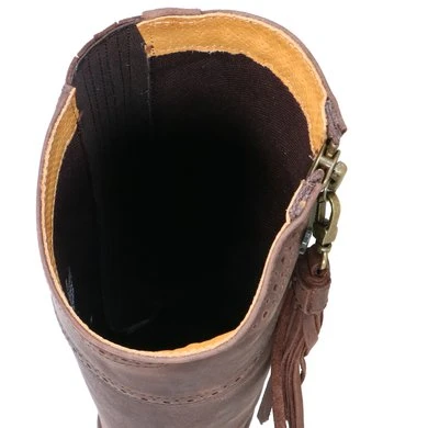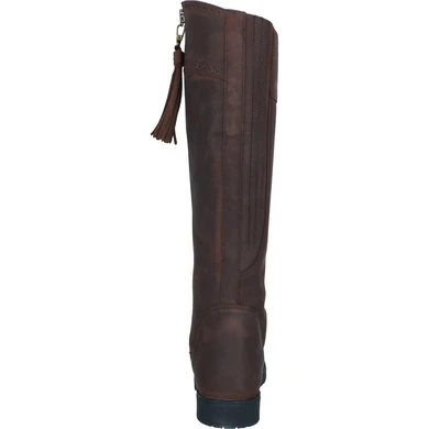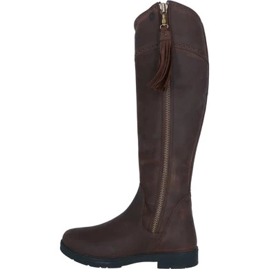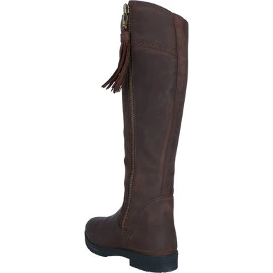 Een countrylaars met veel praktische stijl. Geolied leer is sierlijk gevormd om het been te omsluiten en loopt taps toe bij de enkel, de bovenrand is gebogen om het been te flatteren en de kwastjes voegen beweging en interesse toe. De stijgbeugelveilige zool heeft voldoende grip om in alle weersomstandigheden betrouwbare grip te bieden. Geolied, waterafstotend leer is sneldrogend en blijft flexibel, waterdichte sokken zorgen ervoor dat de voeten droog blijven. YKK-ritsen met 1/4-hoge inzetstukken. Flexibel, sneldrogend waterafstotend leer. Waterdichte membraanvoeten. WickAway droogblijvende voering en zachte piqué leren binnenkant. ActiveFit-binnenzool met Impact Support System. Moretta AllTerrain rijzolen met stalen schacht voor betrouwbare grip in alle weersomstandigheden en buitenactiviteiten.